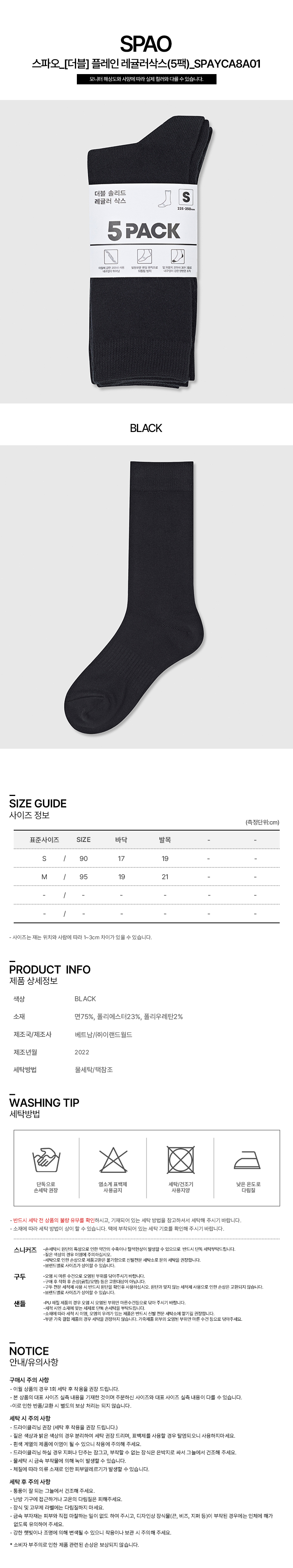 플레인 레귤러삭스 5팩 SPAYCA8A01 T _P411474052