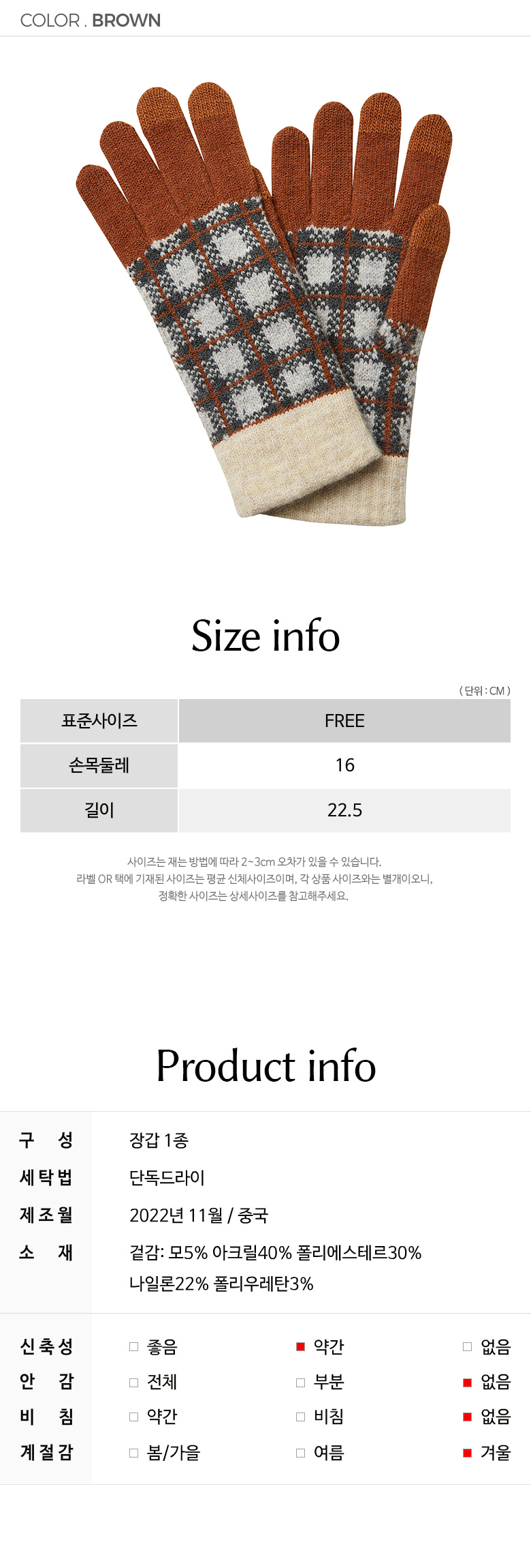 (신세계팩토리스토어 강남점)체크배색울니트장갑_PBBF2W1AC9061