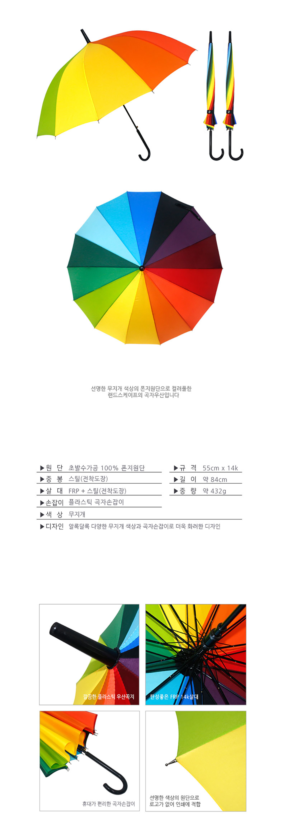 장우산 초발수 태풍 큰우산 무지개 우산 LDUN037