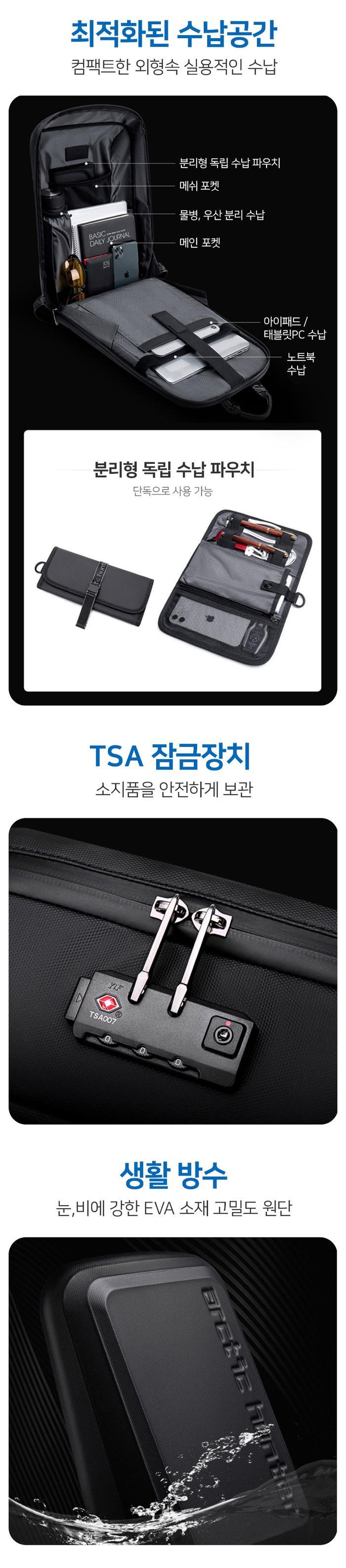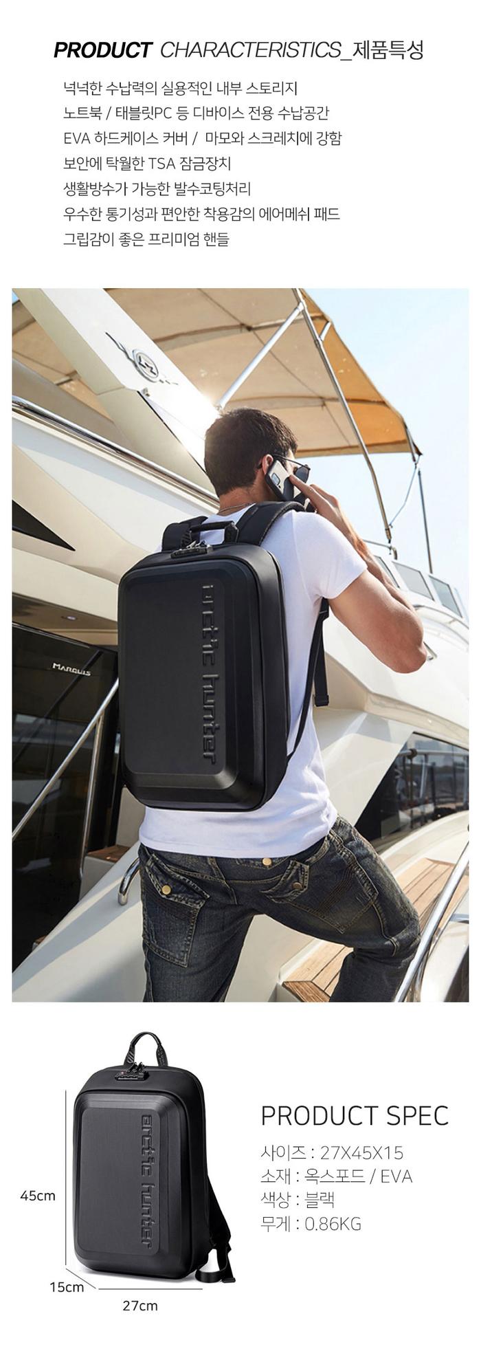 하드타입 생활방수 슬림 백팩 남자가방 잠금기능