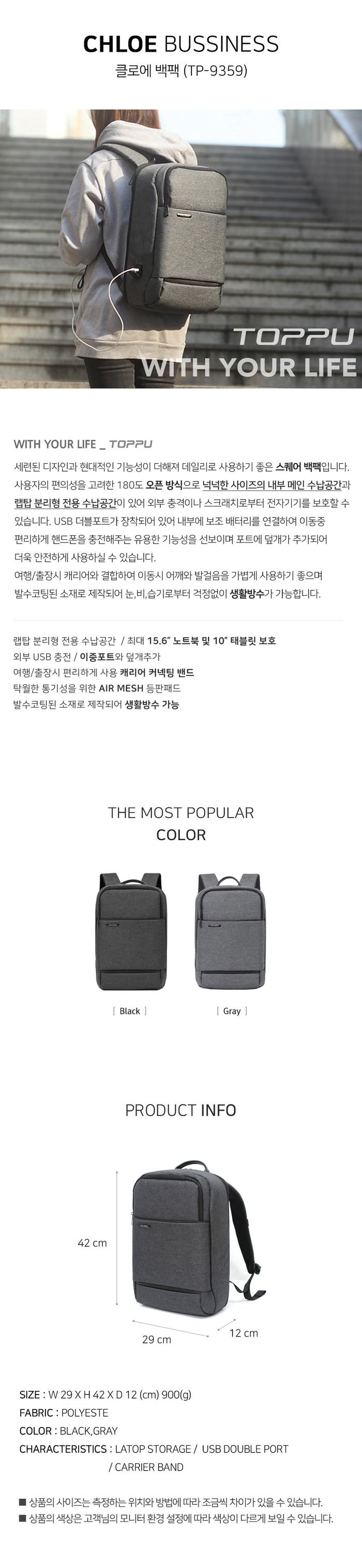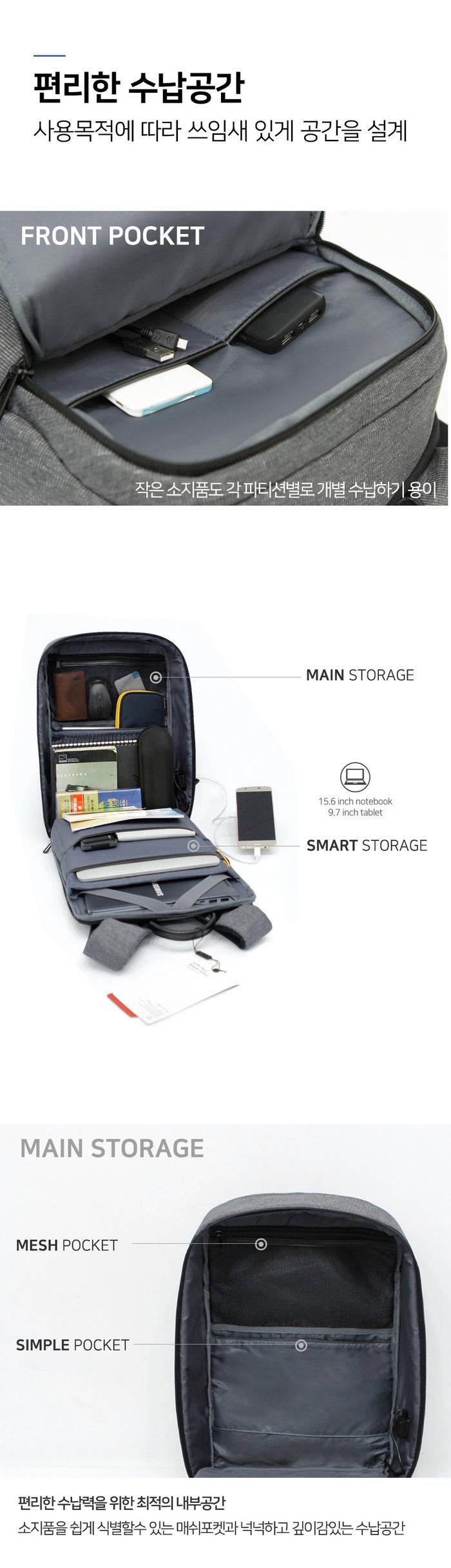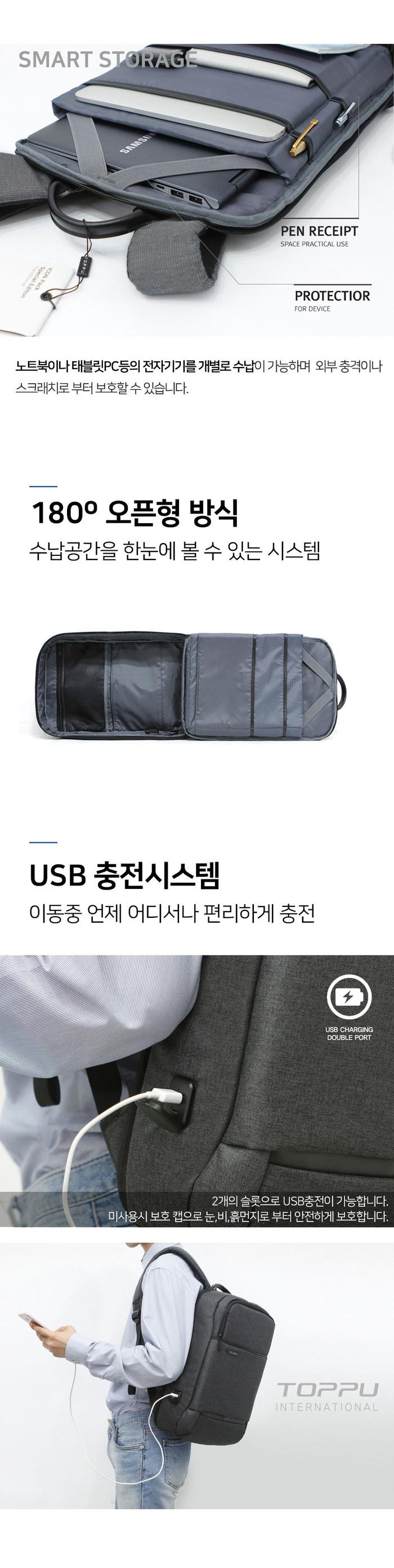 심플 스퀘어 생활방수 백팩 USB 학생 노트북가방