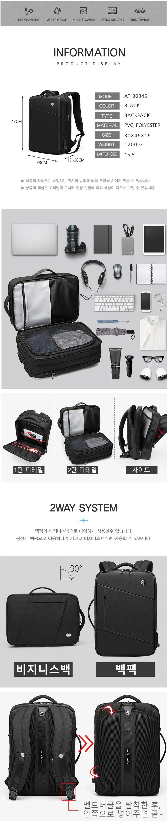 깔끔한 남성백팩 비즈니스 확장형 토트백 노트북가방