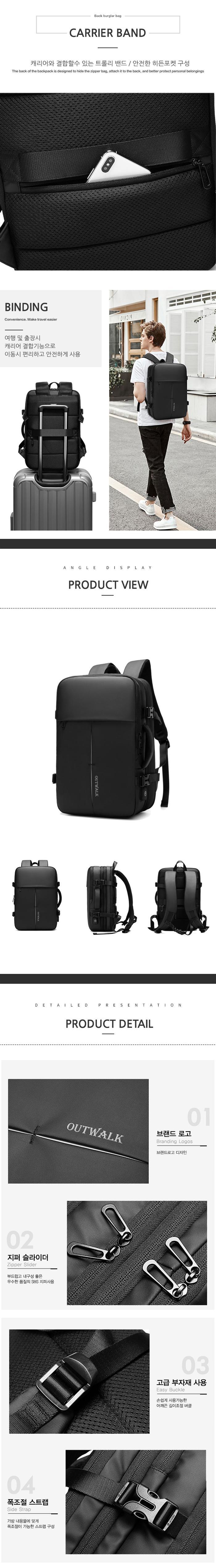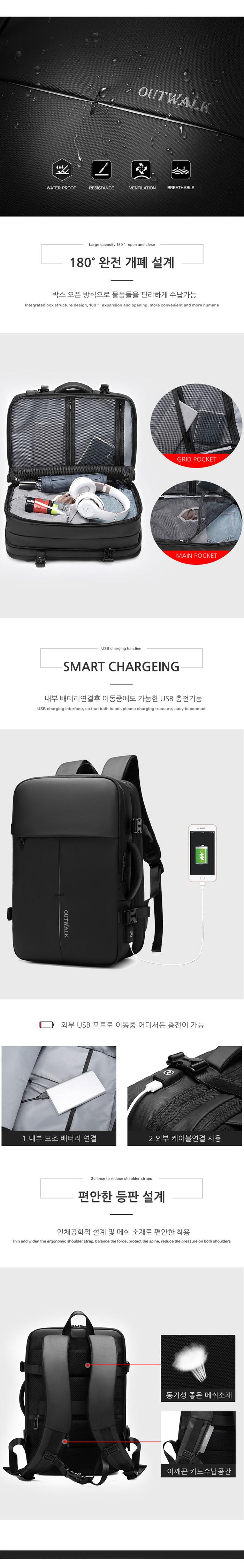 심플한 확장형 백팩 USB 비즈니스 여행용 수납 노트북