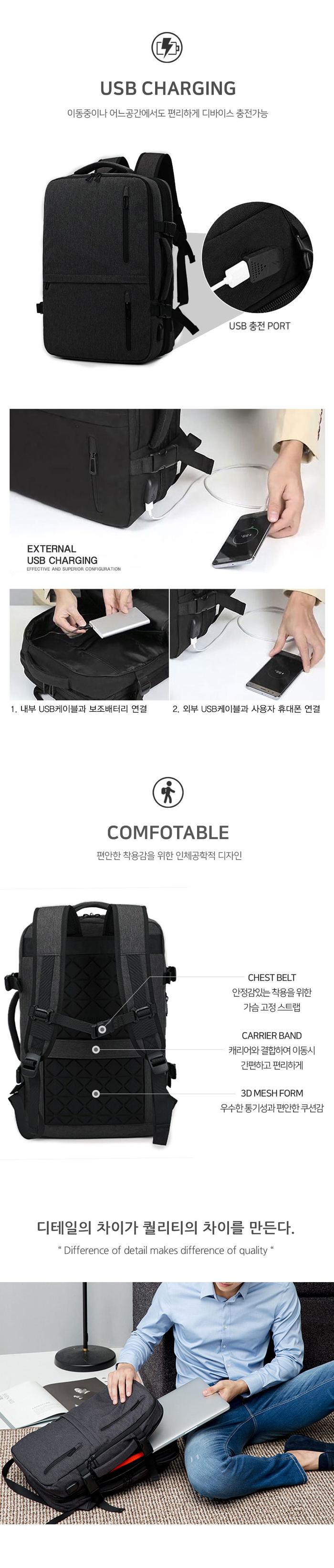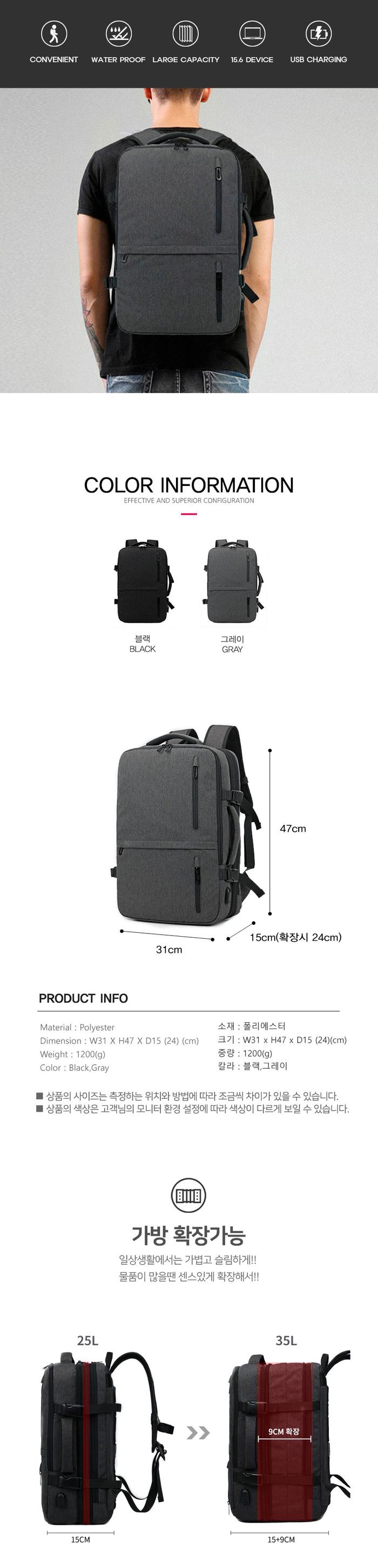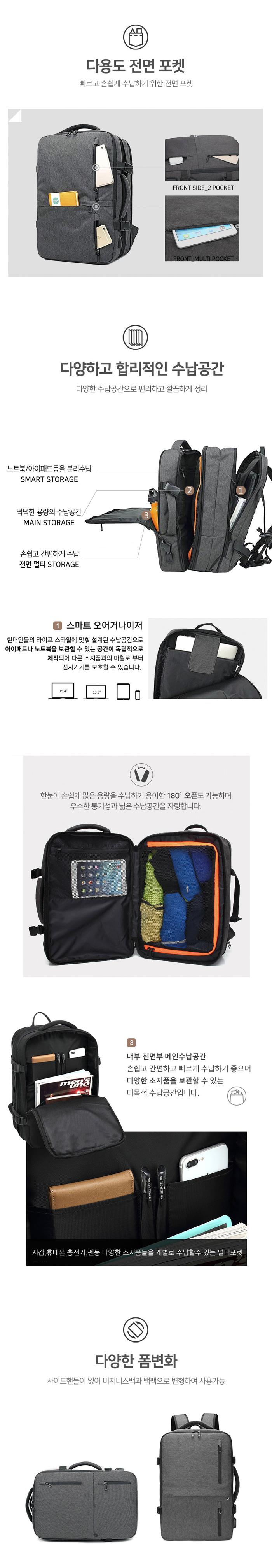 지퍼포켓 백팩 확장형 캐리어 스퀘어 남자 토트백