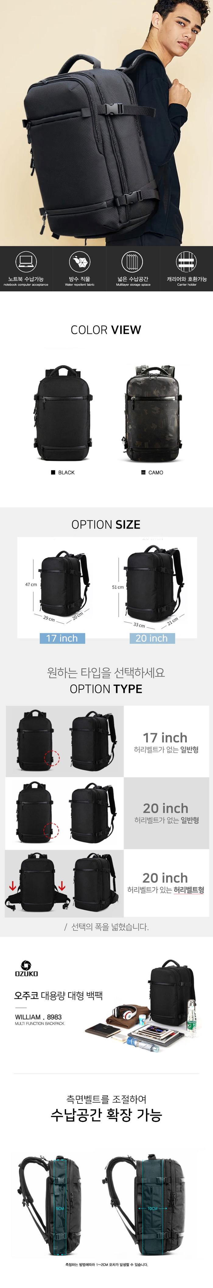 수납왕 남성 확장형 백팩 대용량 USB 17인치 여행배낭