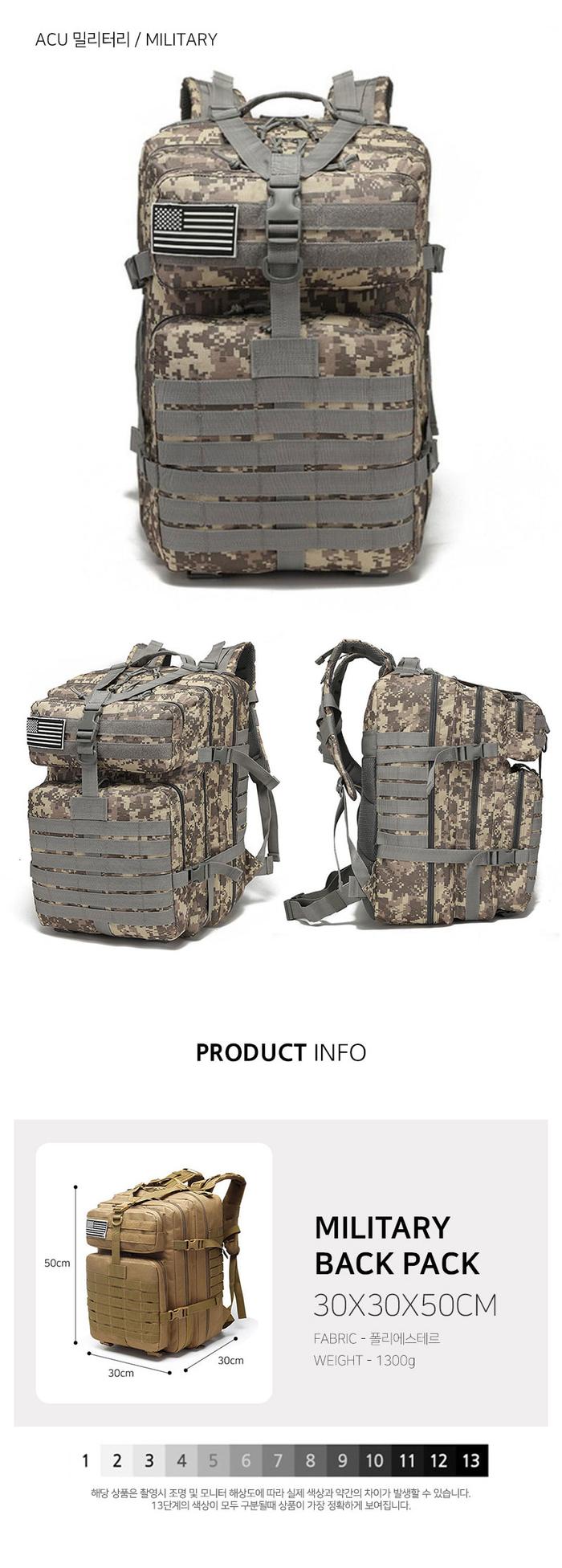 국기 밀리터리 벨트 백팩 빅사이즈 트래킹 트래블백
