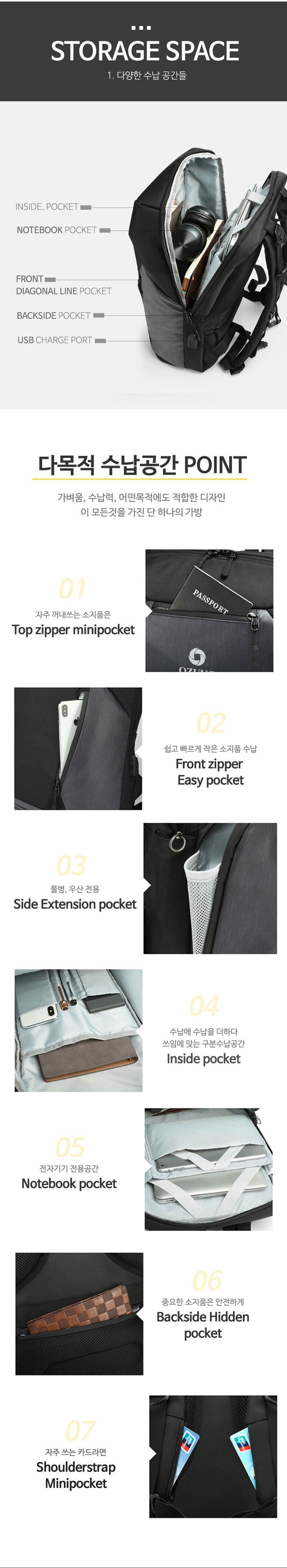 다기능 백팩 체스트스트랩 대용량 도난방지 여행 배낭