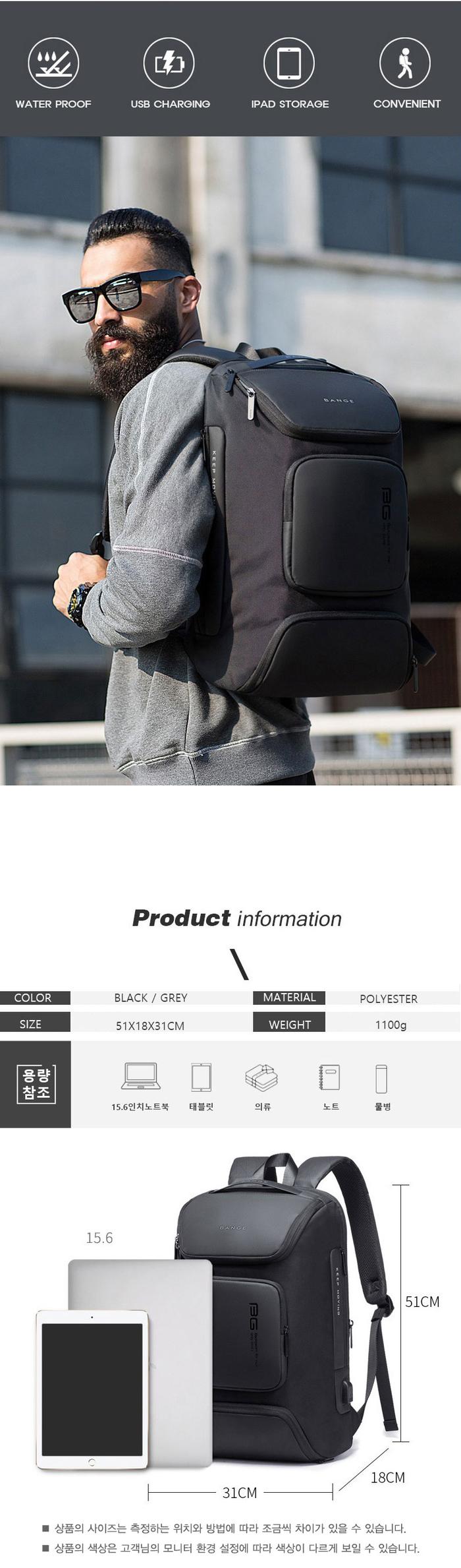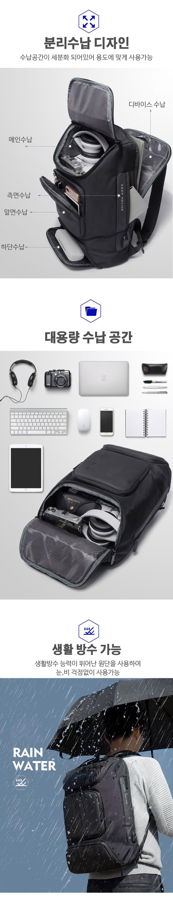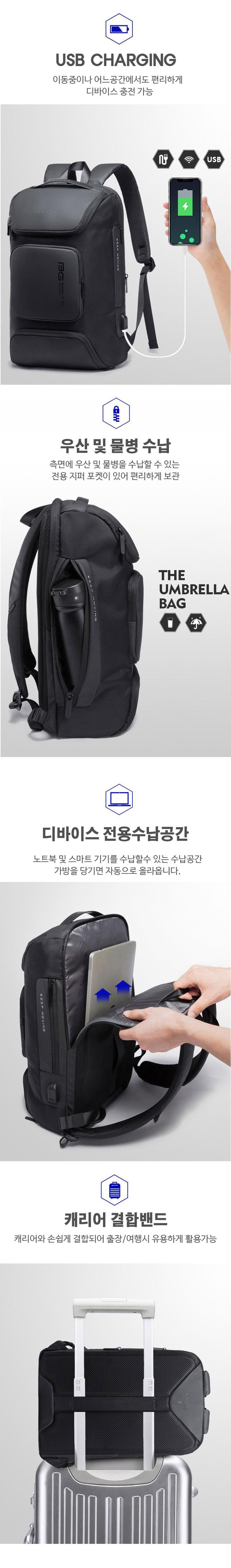 데일리 다용도 멀티 포켓 백팩 USB 텀블러 남성 가방