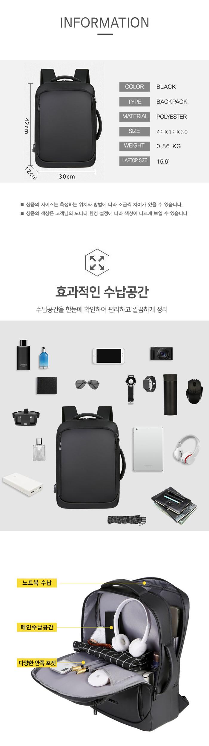 깔끔한 스마트 백팩 USB 다용도 수납 남성 노트북가방