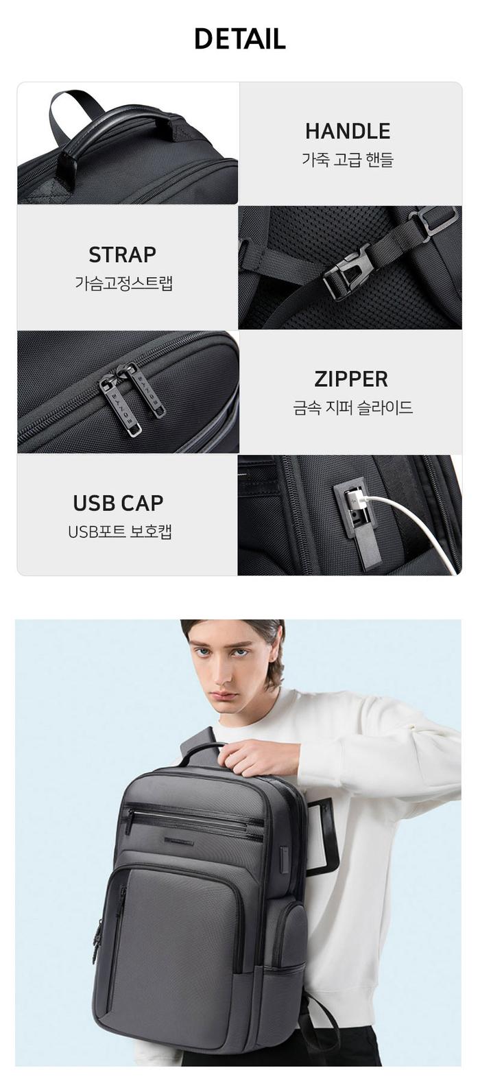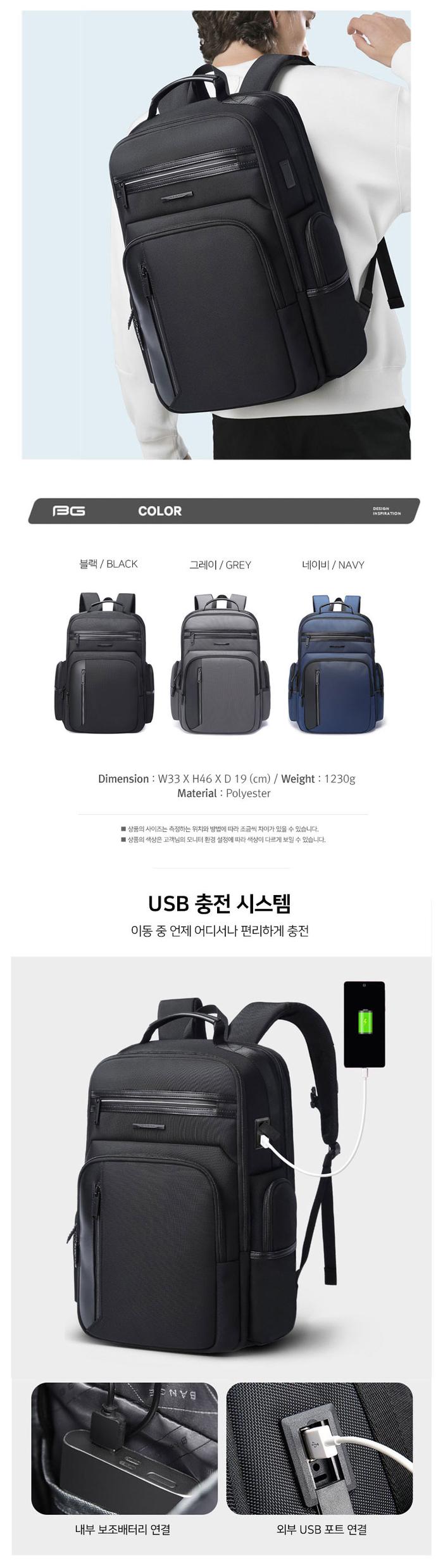캐주얼 사이드포켓 백팩 오피스 탑핸들 남성가방 USB