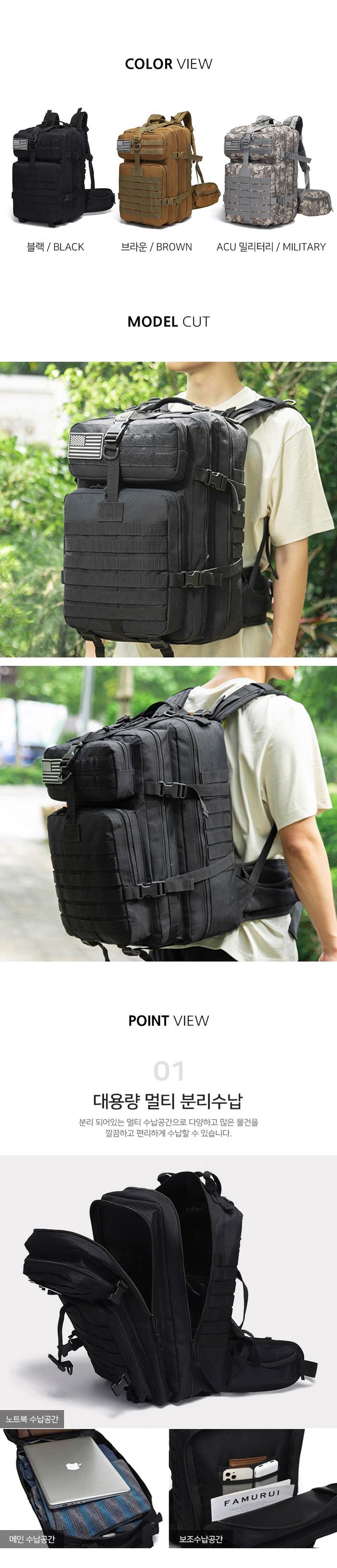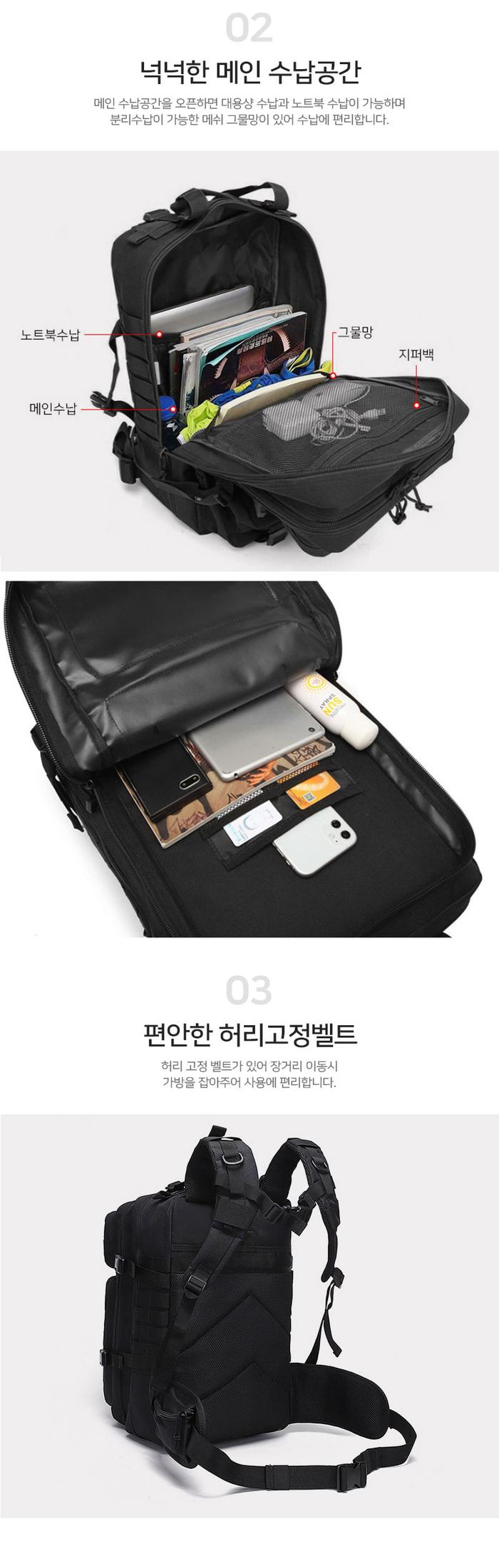 스포티 트래킹 백팩 대용량 전술배낭 버클 트래블백