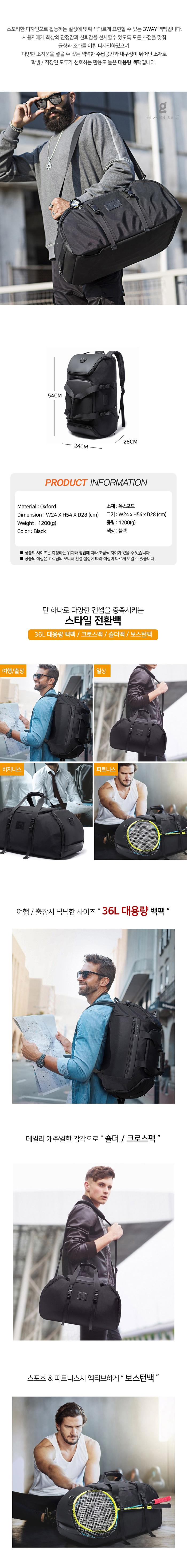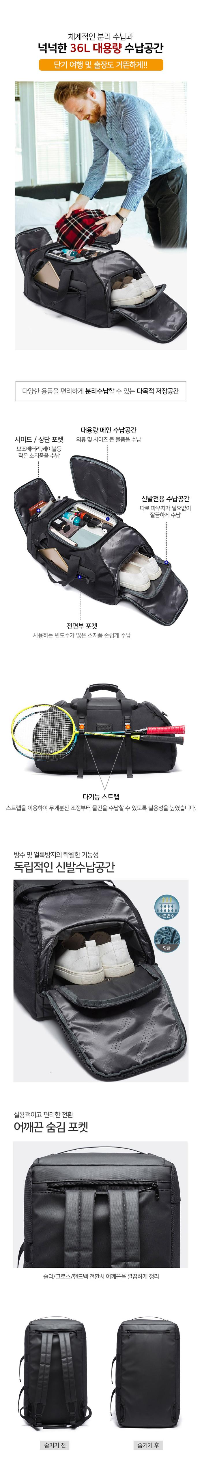멀티 수납력좋은 3way 크로스백 남성백팩 36L 스포츠가방