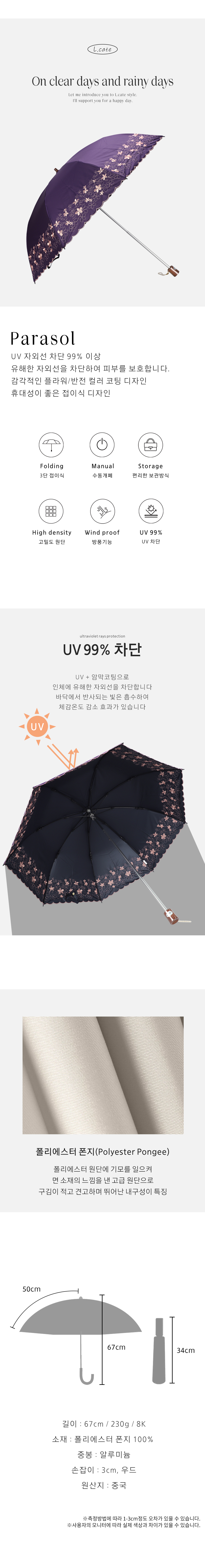 3단 양산 꽃무늬 수동 접이식 자외선차단 양산 LDDR138