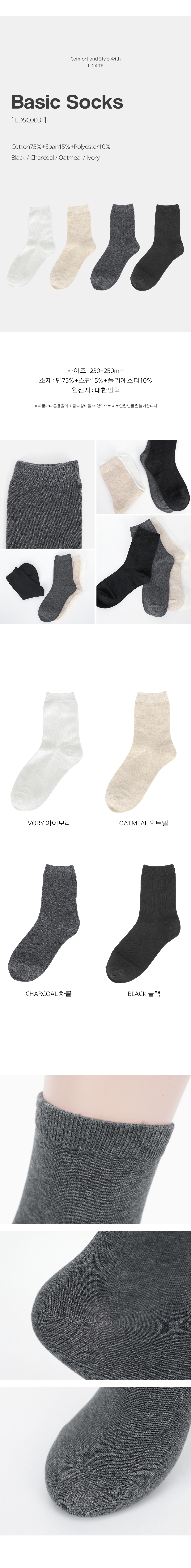 여성 양말 중목 긴목 베이직 무지 국산 사계절 기본양말 LDSC003