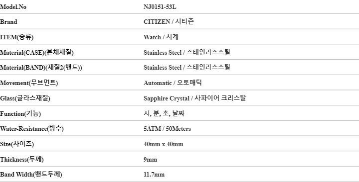 시티즌 CITIZEN NJ0151-53L 남성 시계