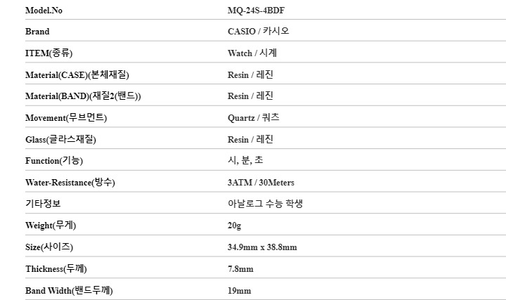 카시오 CASIO MQ-24S-4BDF 공용 시계