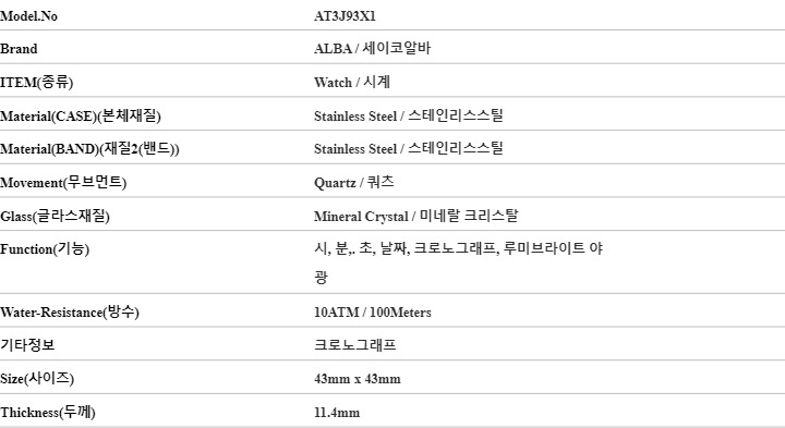 세이코알바 ALBA AT3J93X1 남성 시계
