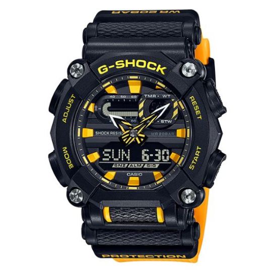 게다가, 밴드 연결부와 모든 버튼들은 체크무늬의 표면으로 디자인되었습니다. 이 디자인은 미끌림을 방지하고 원활한 작동성을 지원합니다. 옐로우 컬러의 레진 밴드를 사용한 GA-900A, 오렌지 컬러의 내구성이 뛰_어난 소재인 크로스밴드를 사용한 GA-900C, 블랙컬러의 레진 밴드를 사용한 GA-900E 모델은 블랙 레진밴드와 크로스 밴드, CMF (컬러 소재 마감) 의 디자인을 표현하고 있습니다.