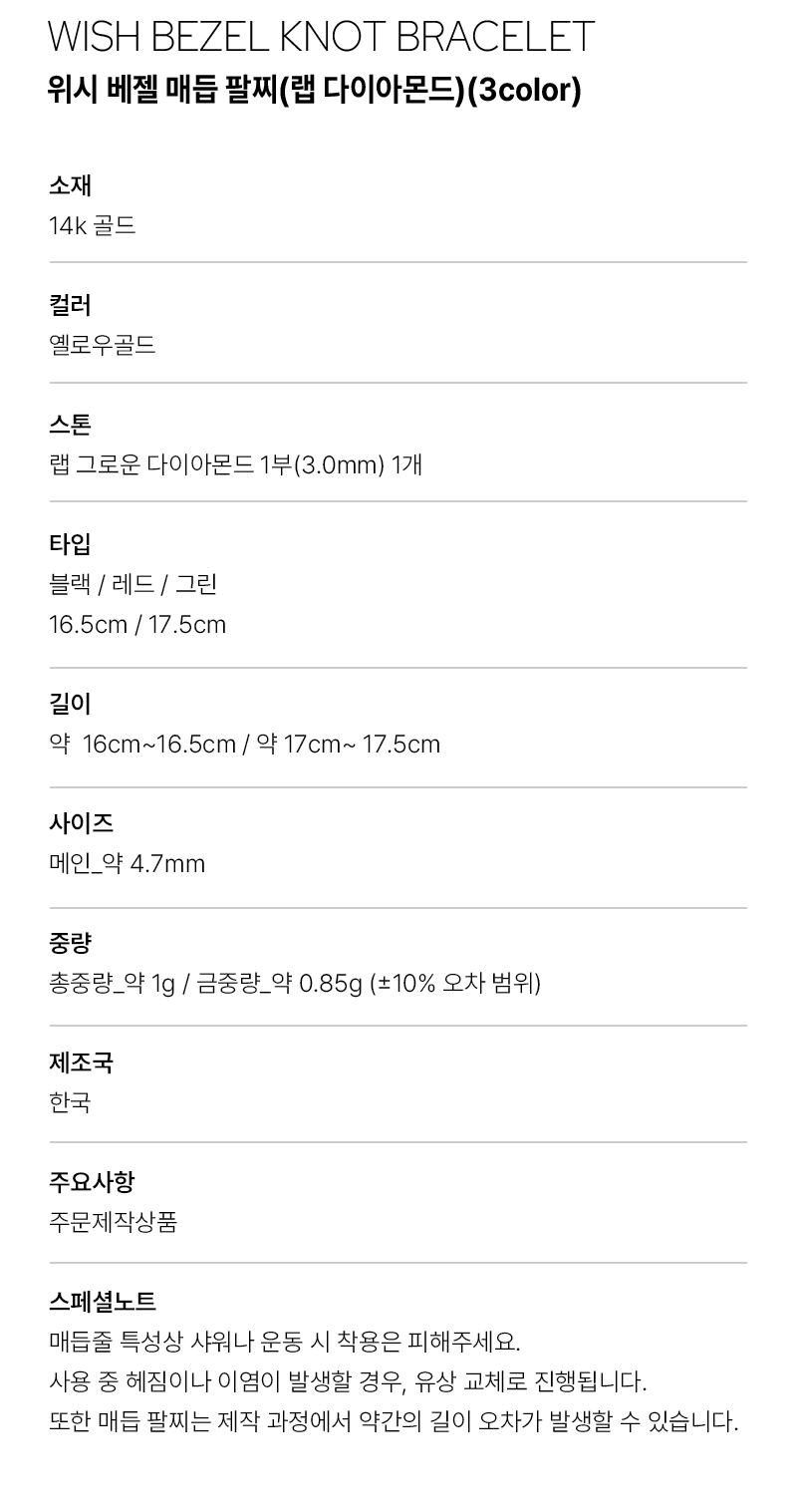 도로시 14k 위시 베젤 매듭 팔찌(랩 다이아몬드)(3color)
