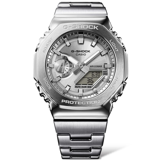 새로운 G-STEEL GM-2110D 모델은 세련된 메탈 베젤과 밴드로