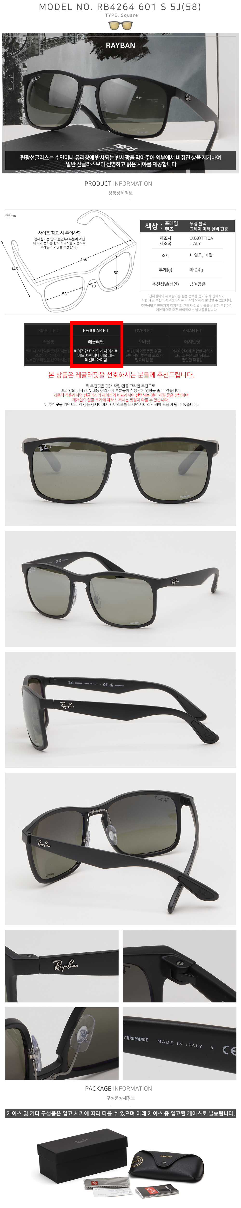 레이밴 선글라스 RB4264 601S/5J 미러 편광 가벼운 뿔테 낚시 크로맨스