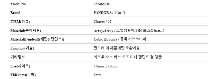 (현대Hmall)판도라 여성 미니 미 에로우 오브 러브 로즈 펜던트 참(782466C01)