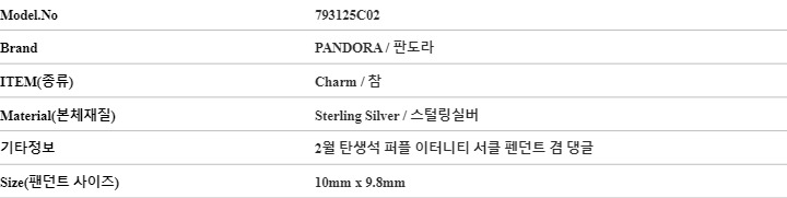 (현대Hmall)판도라 여성 2월 탄생석 퍼플 이터니티 서클 펜던트 참(793125C02)