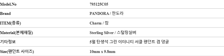 (현대Hmall)판도라 여성 5월 탄생석 그린 이터니티 서클 펜던트 참(793125C05)
