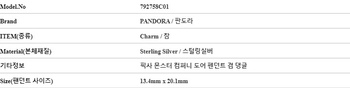 (현대Hmall)판도라 여성 디즈니 픽사 몬스터 컴퍼니 도어 펜던트 참(792758C01)