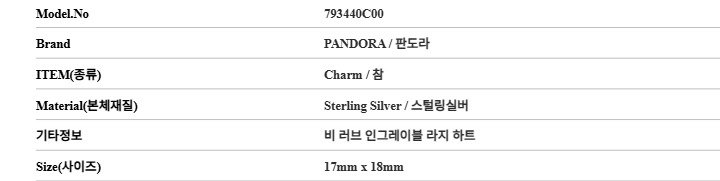 (현대Hmall)판도라 여성 라지 비 러브 인그레이블 하트 펜던트 참(793440C00)