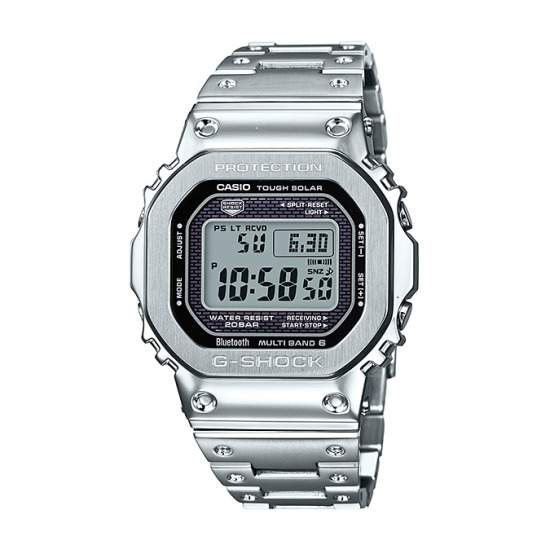 가장 충격이 많이 전달되는 밴드 연결부를 개선하고, 케이스 중앙에 지지대 형식의 구조를 추가함으로서, 밴드 연결 파이프 부분에 가해지는 충격을 분산시킵니다. 또한 스크류 백을 적용하고 그 위에는 내마모성이 뛰_어난 DLC 처리를 하였습니다.선명한 시인성을 위해 엄선한 솔라 필름이나, 기울어진 각도에서도 시각표시를 판독하기 쉽게 하는 STN LCD 액정을 이용하여 시인성을 극대화 시켰습니다.오리지널 모델을 오마주한 페이스 디자인은 문자판부터 메인 표시 레이아웃 부분까지 닮았지만 세련되게 세밀한 피니싱에 신경을 썼습니다.초대 지샥 모델인 DW-5000 모델과 닮은 디자인으로 완성 시켰습니다.최신 엔진을 탑재하고 고밀도 기술을 이용하여 사이즈를 유지하였습니다. 또한 완성도 높은 디자인을 계승하고, 외장, 모듈을 진화 시킨 풀 메탈 GMW-B5000D에 기대감을 걸고 있습니다.기능 면에서는 정확한 시간 표시를 추구하여 Bluetooth 통신 기능과 세계 6군데의 표준 전파에 대응하는 멀티밴드6를 적용하였으며, 전용 어플리케이션 G-SHOCK Connected1와 연결 시켜 인터넷 상의 타임 서버에서 정확한 시간정보를 얻을 수 있습니다.또한 카시오 독자적인 절전력 기술에 의한 터프 솔라방식으로 어떤한 빛에도 반응해 안정적인 구동을 가능하게 만듭니다.또한 새롭게 탑재된 고휘도 풀오토 LED 백 라이트로 최상의 시인성을 가지고 있으며 월드타임 등 실용성도 갖추고 있습니다. 또한 6국 나라의 언어로 요일표시2가 가능한 로컬라이즈도 가능합니다.전세계에서 정확한 시각이 표시되며, 글로벌 베이직을 추구하는 정통성을 계승하였습니다.초기 모델부터 계승한 컨셉은 그대로 유지하며, 글로벌한 퀄리티를 추구하여 외장, 구조, 모듈을 진화 시킨 풀 메탈을 사용한 Best 명작이 원점으로부터 탄생 되었습니다. 2018년, 35주년을 맞이하여 새로운 가능성을 발견한 브랜드의 마스터피스(명작)로서 진화한 GMW-B5000D가 출시 되었습니다.스마트 폰과 연동 (약 300개의 도시 오리지널 도시의 월드타임 설정, 자동 시각 조정, 간단 시계 설정, 리마인더, 타임장소, 핸드폰 탐색, 배터리 인디케이터 표시 (7단계로 표시))세계 6군데 (일본 2군데, 중_국, 미국, 영국, 독일)의 표준 전파를 수신하여 시각을 자동수정하는 멀티밴드6 + 터프솔라 (태양광 충전방식)멀티 타임 5개고휘도 풀 오토 LED 라이트 (슈퍼일루미네이터, 2초/4초 라이트 시간 전환, 페이드 인/페이드 아웃)6국의 언어 (영어, 스페인어, 프랑스어, 독일어, 이탈리아어, 러시아어)의 요일 표시1 G-SHOCK 스마트폰 링크 모델 전용 어플리케이션.스마트폰과 연동하여 자동 시간 조정, 월드타임 등 시각 설정을 Bluetooth 접속에 대응한 Connected 엔진에 접속하여 전세계에서 최신 타임 , 서머타임 정보를 반영한 시각을 표시합니다. 터프솔라 적용에 의해 과부하가 걸리는 기능의 솔라 구동을 적용하였습니다.2 요일 언어 (영어, 스페인어, 프랑스어, 독일어, 이탈리아어, 러시아어)