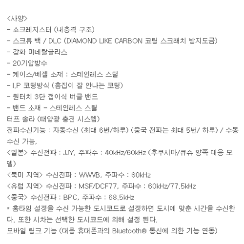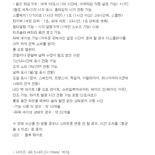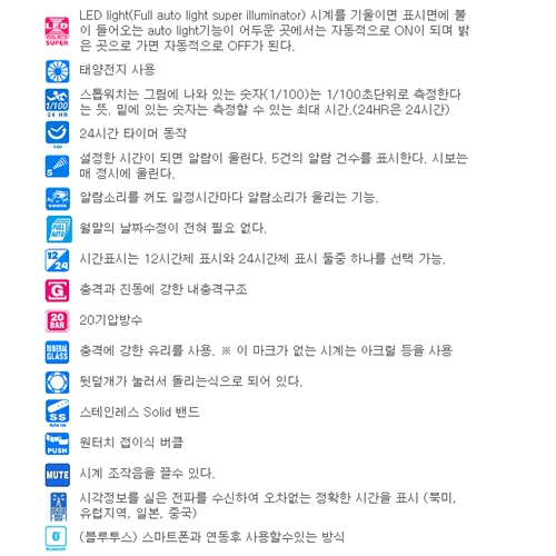 (주)지코스모 정품 보증서 제공해드립니다. 공정거래위원회 고시(소비자분쟁해결기준)에 의거하여 보상해 드립니다.무상 보증기간은 2년이며, 방전또는 시계내부결함 외에 소모성부품(밴드,베젤,유리,버튼등)은 유상처리됩니다.A/S:02-325-1120