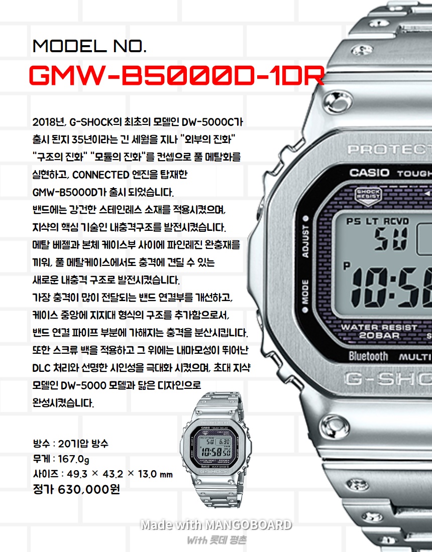 (롯데백화점)전파시계 태양전지 GMW-B5000D-1DR 메탈시계 패션시계 남성시계