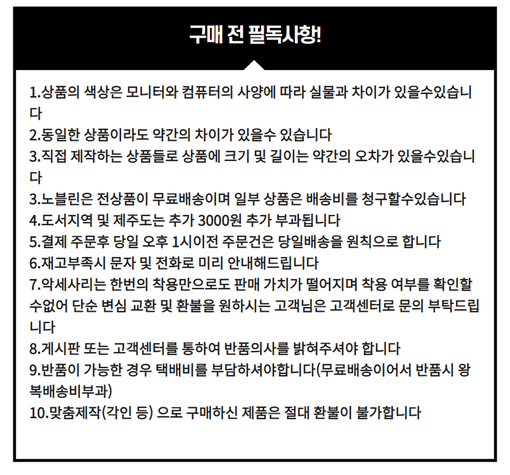 | 특이 사항 | 배송, 변경, 반품 환불에 대한 문의는 위 연락처로 문의 주세요. | ||