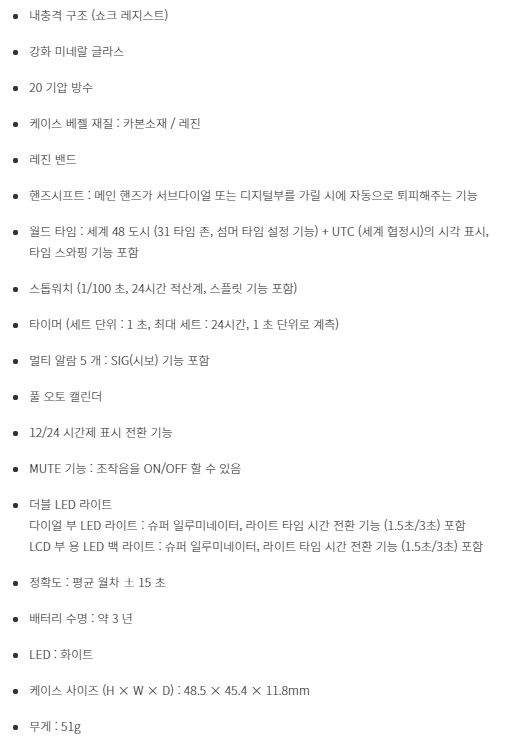 (주)지코스모 정품 보증서 제공해드립니다. 공정거래위원회 고시(소비자분쟁해결기준)에 의거하여 보상해 드립니다.무상 보증기간은 2년이며, 방전또는 시계내부결함 외에 소모성부품(밴드,베젤,유리,버튼등)은 유상처리됩니다.A/S:02-325-1120