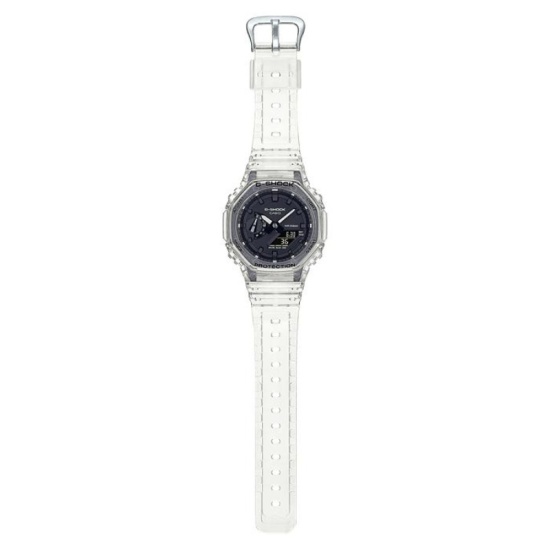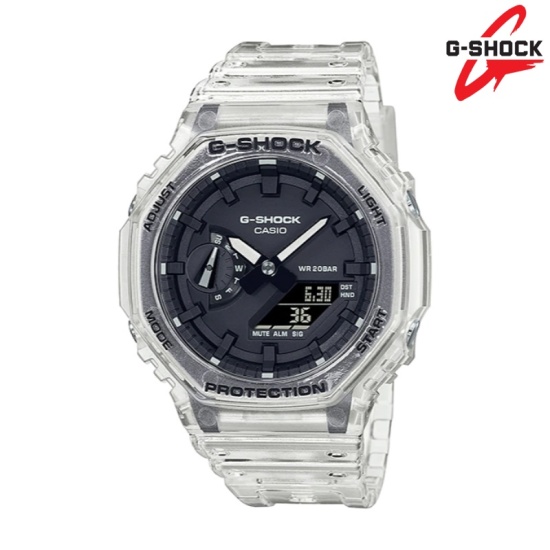 강건함을 추구하고 진화를 거듭하는 G-SHOCK에서 투명 레진 소재로 구성된 스켈레톤 시리즈의 GA-2100SKE-7ADR을 소개합니다.