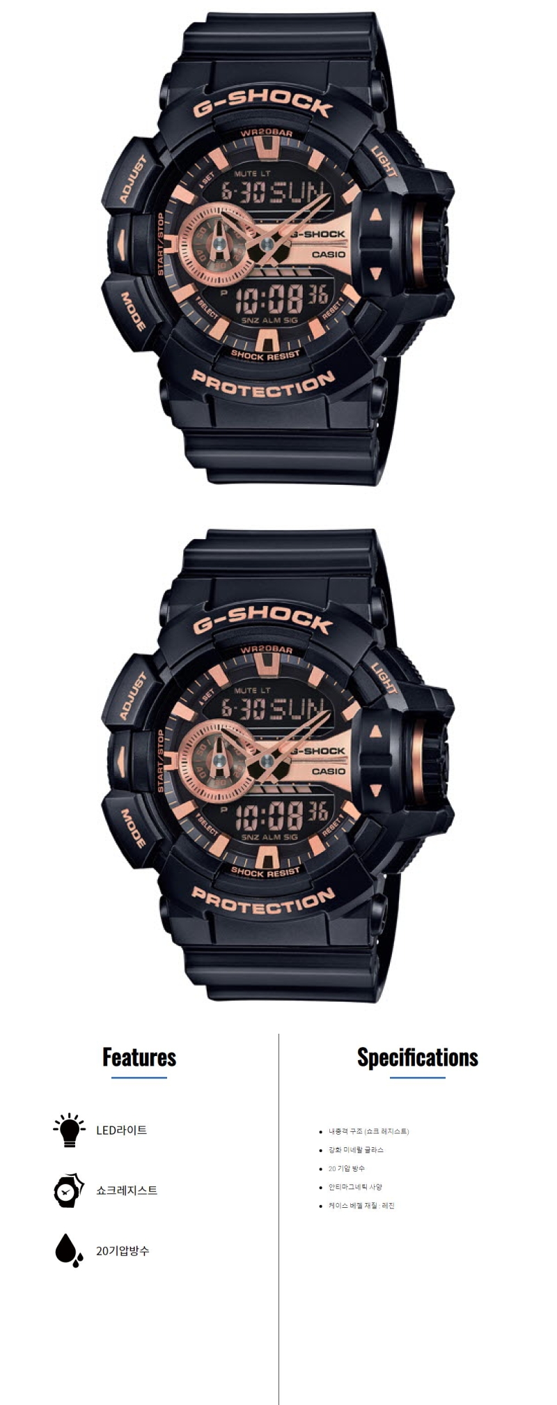 스트리트 씬에서의 독보적인 포지션으로 전 세계적으로 사랑받고 있는 BIG-FACE의GA-400 모델을 베이스로 반짝이는 메탈 다이얼이 고급스러운 GA-400GB 시리즈입니다.