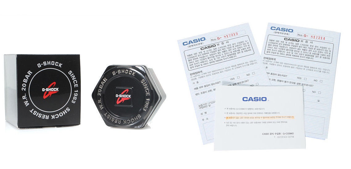 기본 구성품은 시계, 제품 박스 패키지, 취급 설명서(영문), 지코스모 보증서입니다.(제품 박스 패키지는 모델에 따라 형태, 색상 등이 다를 수 있습니다)