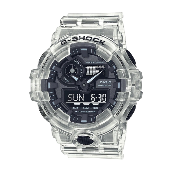 화이트를 베이스로 한 클리어 타입의 컬러에 더한, 역동적인 3D 페이스가 그대로 드러나는 GA-700을 라인업했습니다. 세련된 컬러로 패션 아이템으로 사랑받을 수 있는 스켈레톤 시리즈입니다.