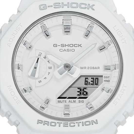 베이스 모델인 GA-2100은 G-SHOCK 초대 모델인 DW-5000C의 팔각형 쉐입을 이어받아 슬림화 한 모델로, 평평한 페이스와 바 인덱스를 통해 전체적으로 심플하면서도 단단한 느낌을 연출합니다.