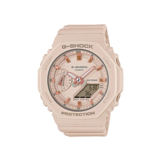 이러한 GA-2100 모델을 더욱 소형화한 GMA-S2100 시리즈는 손목이 가는 여성의 손목에도 잘 맞는 남녀 공용 사이즈가 특징입니다.