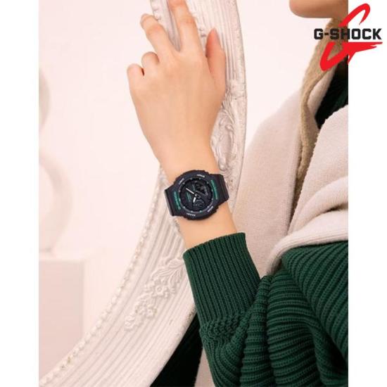 플랫한 다이얼과 심플한 바-인덱스가 미니멀하고 실용적인 인상을 연출하는 베이스 모델 GMA-S2100의 로고나 인덱스, 액정 등에 트렌디한 그린을 바리에이션한 이 모델은, 스트리트 패션을 포함한 전반적인 캐주얼로 스타일링하기 쉬운 디자인이 매력적인 모델입니다.