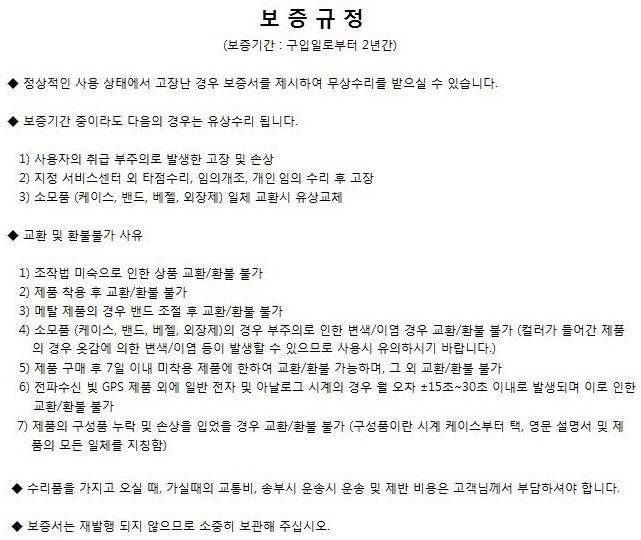 (외부 오픈으로 인한 시계 고장은 보증기간 이내라 해도 어떠한 이유로도 무상으로 처리되지 않습니다.)