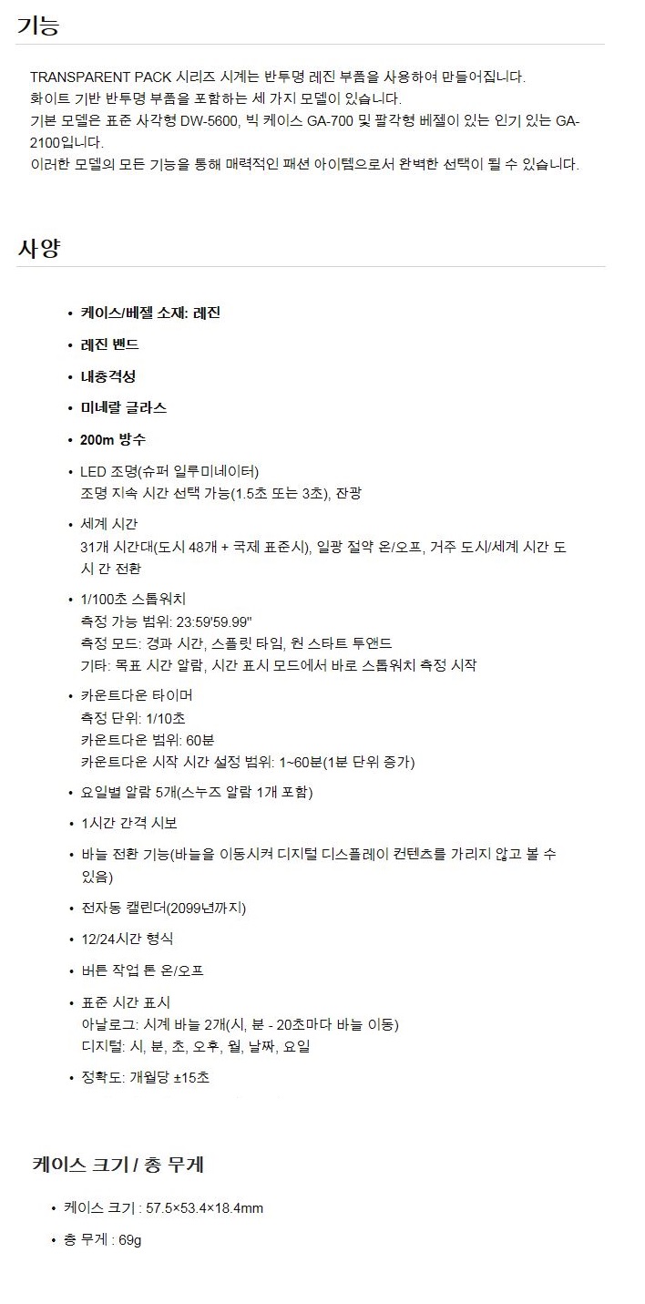(롯데백화점)GA-700SKE-7ADR JJSSR 스켈레톤 GA-700SKE 빅페이스 전자시계