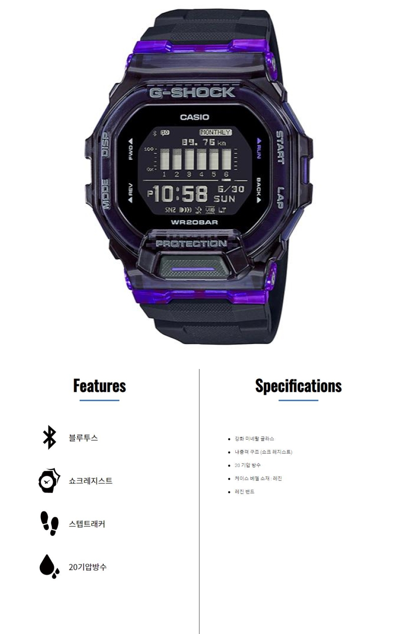 스켈레톤 베젤에 스포츠웨어나 스니커즈 디자인에서 볼 수 있는 비비드한 보라색 착색을 채용해, 워크아웃이나 러닝웨어를 완성시킬 수 있는 디자인 포인트가 매력적인 시리즈입니다.
