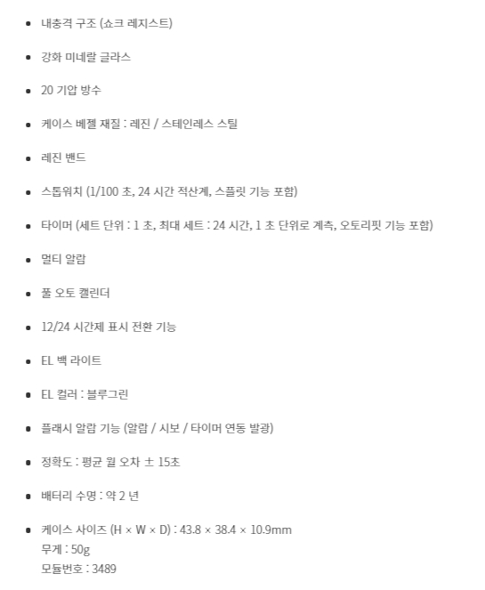 (주)지코스모 정품 보증서 제공해드립니다. 공정거래위원회 고시(소비자분쟁해결기준)에 의거하여 보상해 드립니다.무상 보증기간은 2년이며, 방전또는 시계내부결함 외에 소모성부품(밴드,베젤,유리,버튼등)은 유상처리됩니다.A/S:02-325-1120