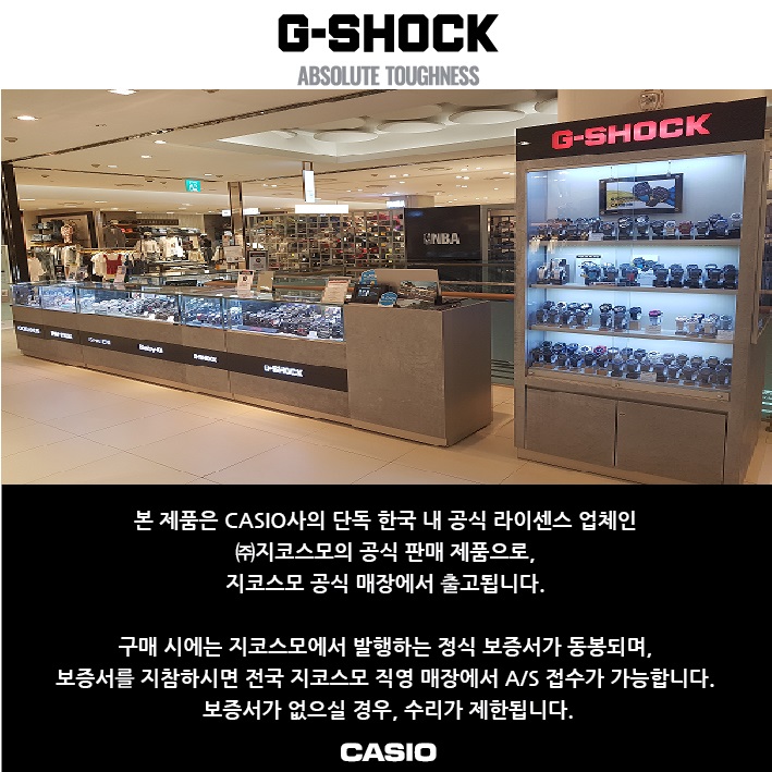 저희 G-COSMO는 CASIO WATCH를 수입 판매하는 회사입니다.일본 CASIO사의 한국내에서 유일한한 라이센스 업체로서 1996년에는 G-SHOCK, BABY-G 브랜드등 패션 고급브랜드를 런칭하였고 1998년에는 좋은 품질의 제품을 고객님들께 다양하게 제공하고자 일반 CASIO WATCH를 런칭하여 현재에 이르고 있습니다.