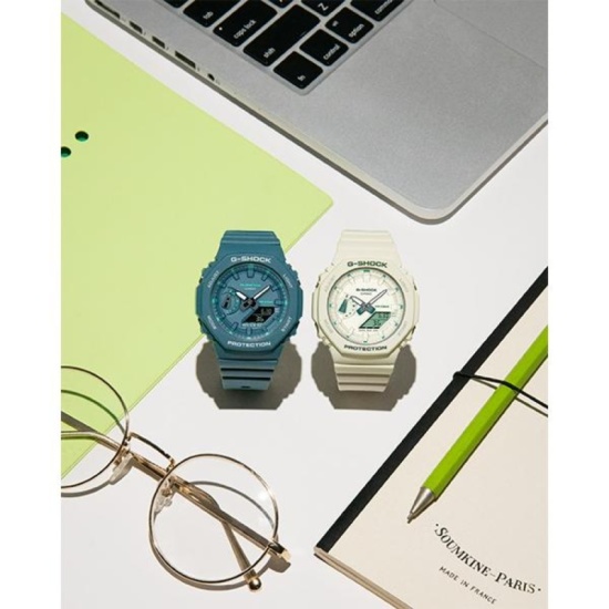플랫한 다이얼과 심플한 바-인덱스가 미니멀하고 실용적인 인상을 연출하는 베이스 모델 GMA-S2100의 로고나 인덱스, 액정 등에 트렌디한 그린을 바리에이션한 이 모델은, 스트리트 패션을 포함한 전반적인 캐주얼로 스타일링하기 쉬운 디자인이 매력적인 모델입니다.