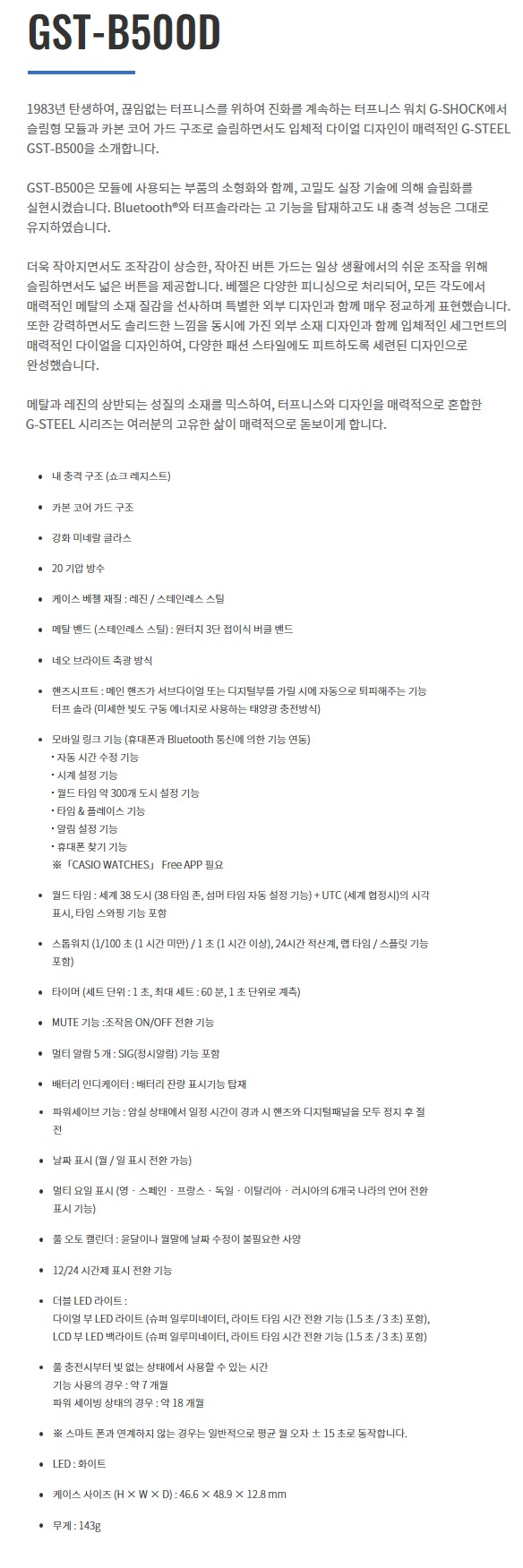 (롯데백화점)GST-B500D-1A1DR JJSSR GST-B500 G-STEEL 블루투스 연동 전자시계