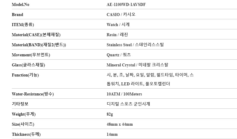카시오 AE-1100WD-1AVSDF 남성 시계